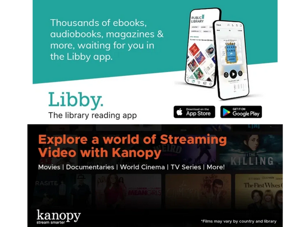 To download titles, go to Libby app or web browser and borrow with a valid library card & PIN.